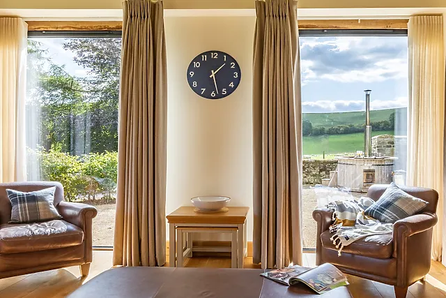 The accommodation features four beautifully furnished bedrooms, including two super king-size, one king-size zip-and-link, and one twin room, all offering comfort and countryside views.