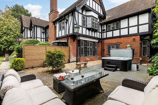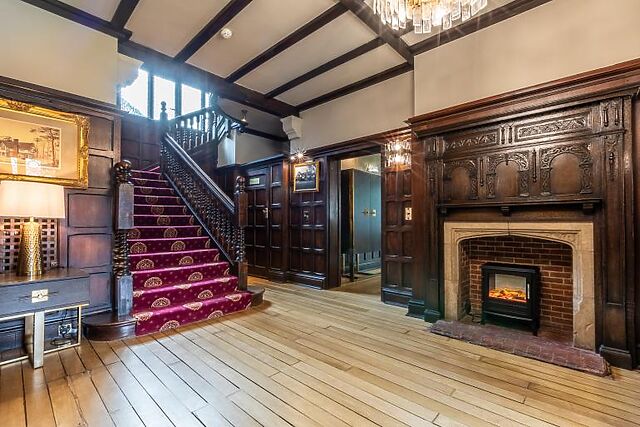 Entering the property from a tree-lined road, the first impression is ‘wow’, when the manicured gardens and the striking Tudor design property come into view. As soon as you enter the grand entrance hallway, you will be greeted by an overwhelming sense of elegance, with features including an opulent chandelier, warm hearth, dark wood panelling and regal stairs bathed in sunlight.
