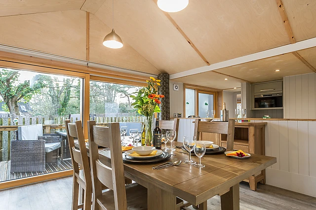 After unloading in the off-road parking spot, kick back and relax in front of a roaring woodburning stove and delight in some light entertainment on the TV. Get to grips with a fantastic range of appliances, ideal for preparing and cooking for the whole group, set the table for a family dinner or step out onto the private decking for an alfresco mealtime within your lovely surroundings.