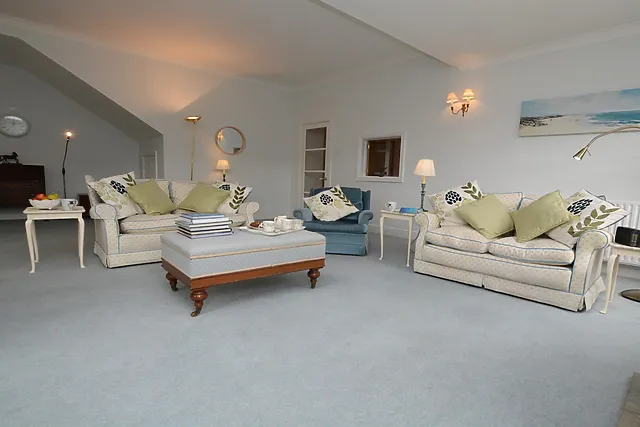 The property features two bedrooms, one with a super-king-size bed and the other with twin zip-and-link beds that can be converted into a king-size bed upon request.