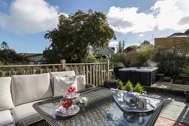 Indulge in the luxury of a private hot tub, perfect for unwinding under the stars after a day of exploring the Jurassic Coast.