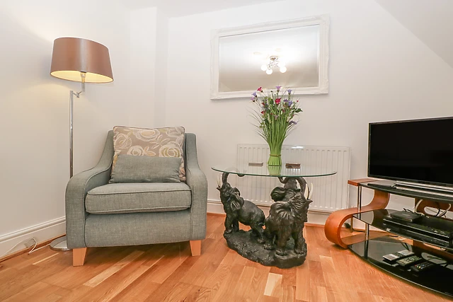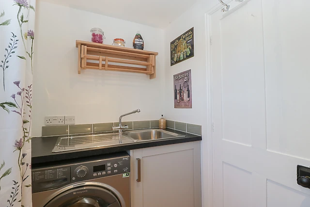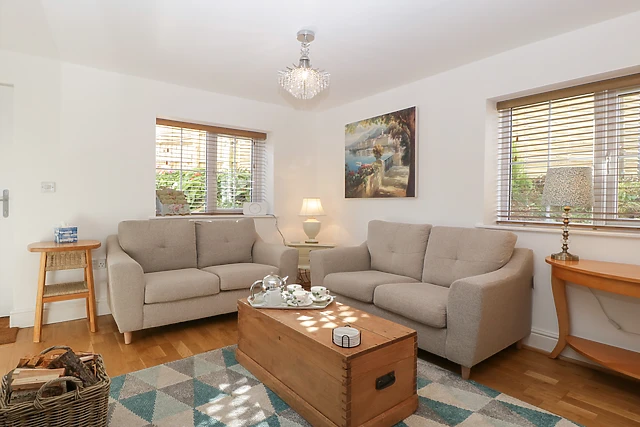 The cottage boasts a traditional open fire, adding to the snug and homely atmosphere of the sitting room.