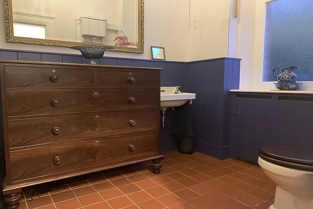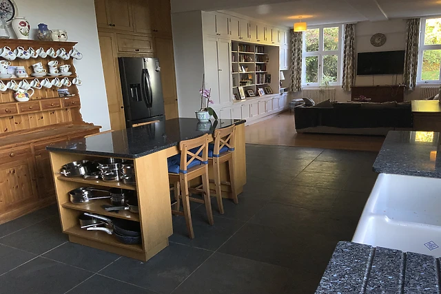 Find the 6 double beds upstairs, offering a family en-suite room with two king beds , three double bedrooms and a master ensuite bedroom with magnificent valley / sea views from the veranda. Both en-suites have roll top baths and there is a large walk in shower room for something quicker.