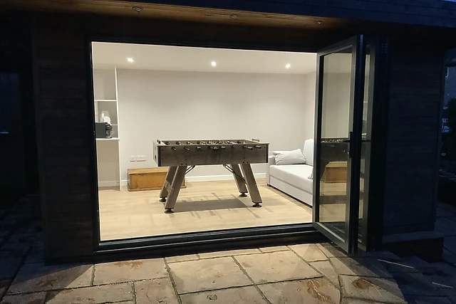 The quality of this home continues outside; a large patio space is well-equipped for summer barbecues and alfresco dining, plus the inviting hot tub offers a fantastic way to end the evening. Work up a sweat in the sauna, lift weights in the gym or challenge each other to a game of ping-pong, all from the cellar and outdoor living room that has table football.