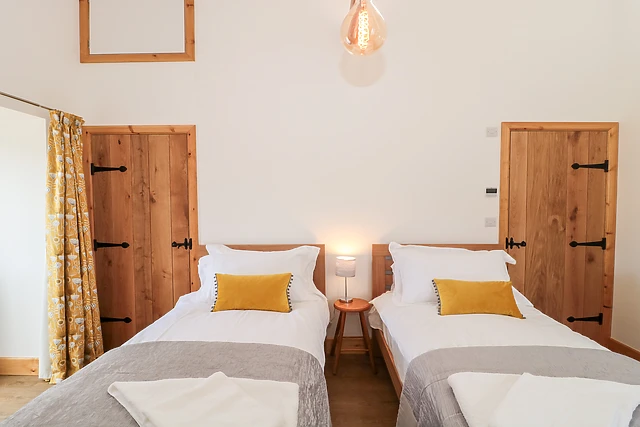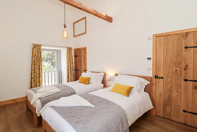 The accommodation has two bedrooms, one king-size with an en-suite and one ground-floor twin, also with an en-suite, comfortably sleeping four guests.