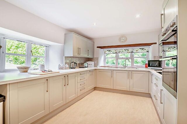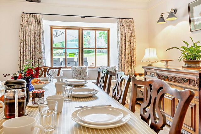 Reunite with family and friends and enjoy catching up by the pair of wood burners. Country style, pretty patterns and rustic features create a lovely ambience that flows between rooms and invites you to unwind.