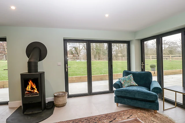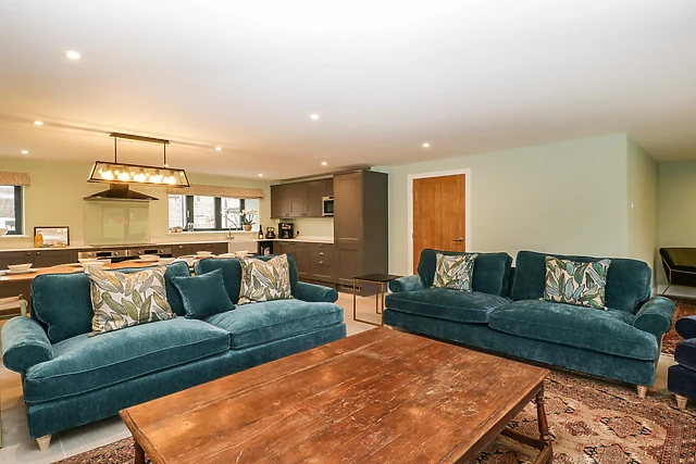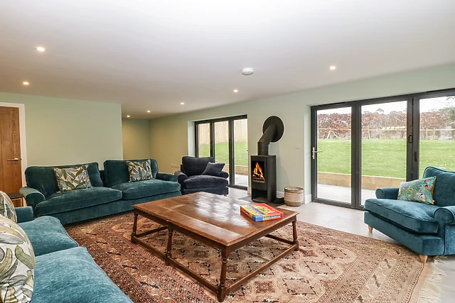 Unwind in the spacious open-plan living area, where a crackling open fire sets the mood for memorable evenings.