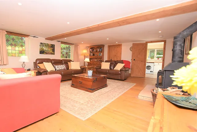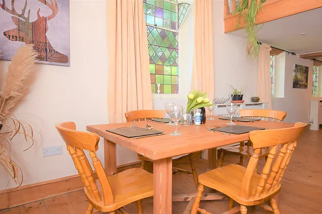 The cottage boasts three cosy bedrooms, including a super-king-size with an en-suite and two single rooms, ensuring everyone has a comfortable space to unwind. The characterful stained glass windows and a wood burner add to the unique atmosphere of the spacious open-plan lounge and dining area.