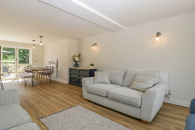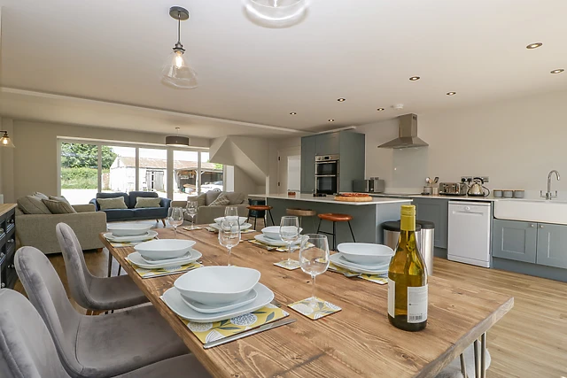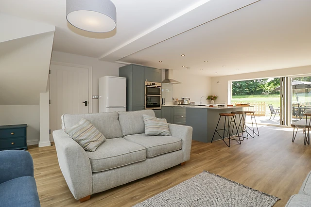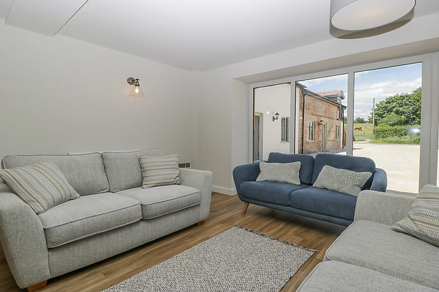 Guests adore the Threshing Barn for its serene views, particularly enjoying the sight of pheasants in the grass. The modern and tastefully appointed interiors, complete with a fabulous kitchen and bi-fold doors, create a light and airy atmosphere. The hot tub is a consistent favourite, providing relaxation and comfort for the whole family.