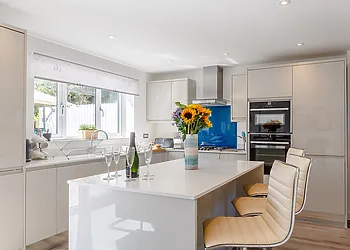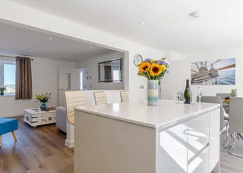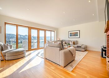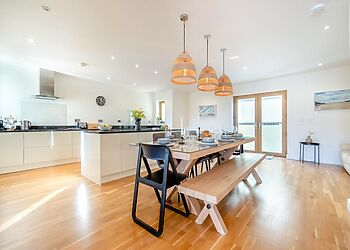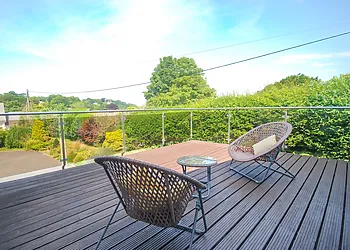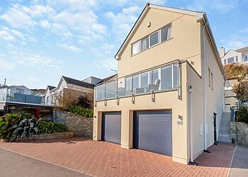 A contemporary, detached villa located in Carbis Bay, Cornwall. Panoramic sea views. Hot tub. Pet-friendly. Off-road parking. Close to beach. St Ives 1.9 miles; Penzance 8.7 miles; Falmouth 21 miles.