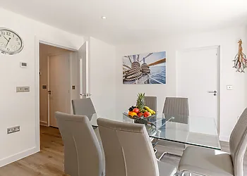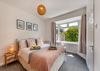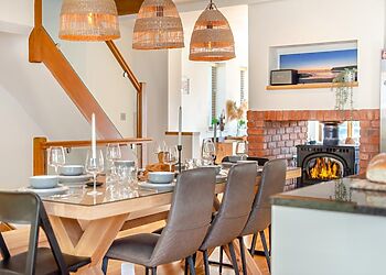 Beach Haven in Newquay, Cornwall, is a luxurious holiday home that sleeps eight people. With four bedrooms, three bathrooms, and a private hot tub, it offers the perfect coastal retreat. Enjoy a well-equipped kitchen, cosy lounge, games room, and various outdoor areas. Nearby attractions include Fistral Beach, Newquay Zoo, and Trenance Gardens.