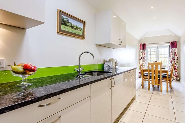 Straight ahead is the galley-style modern kitchen/diner which is perfectly equipped to prepare a feast, which can then be enjoyed around a table that overlooks the garden through French doors. There is a useful utility room located outside and houses the washing machine and tumble dryer.