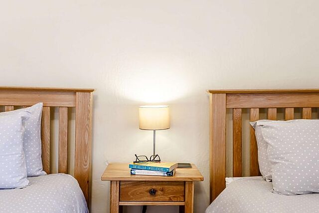 Completing the ground floor accommodation is a super-king-size-zip-and-link bedroom, which can be made into a twin on request and benefits from a TV and en-suite shower room. Head upstairs from the lounge to the twin bedroom, which overlooks the garden and has a TV and en-suite bathroom.