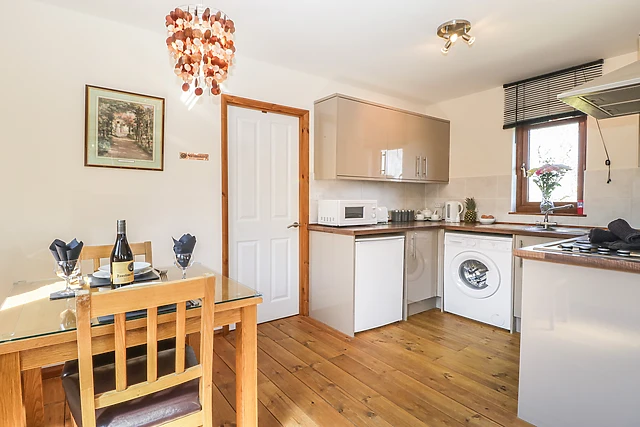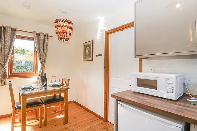 The dining room table seats two people and is the perfect sociable space for dining together, or planning the day's events. As the evening draws to a close, retire to the brightly decorated double bedroom, boasting an en-suite bathroom, with a bath and shower over, so you can decide how best to prepare for your day.