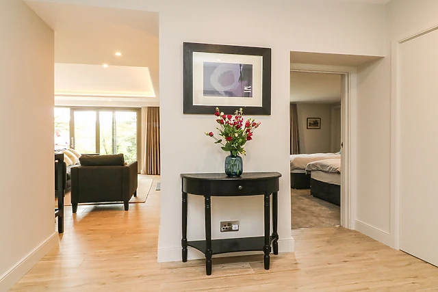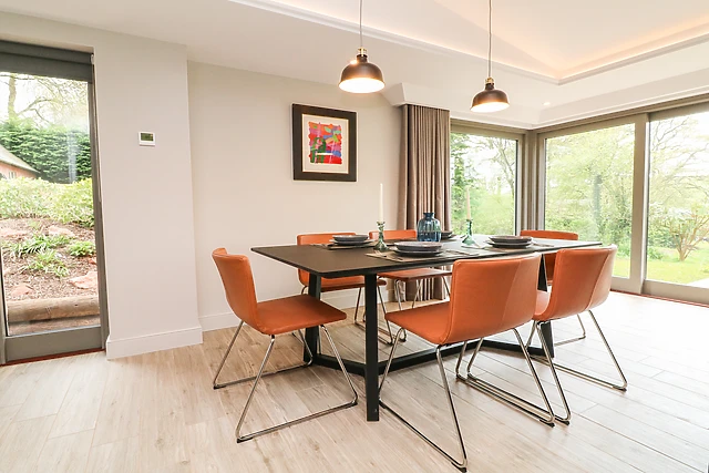 There are extensive local walks on footpaths, by-ways or quiet roads ideal for those with canine companions keen to immerse themselves into the countryside. After a day full of exploration, cross the threshold into your new home-from-home and locate the open-plan living space where a crackling wood burning stove lies at its heart; unwind on the plush sofa in front of it and flick on the Smart TV and good internet access while the designated chef of the group gets acquainted with the fully-equipped kitchen.