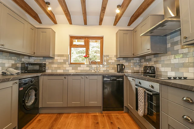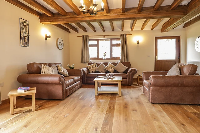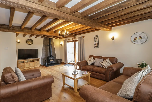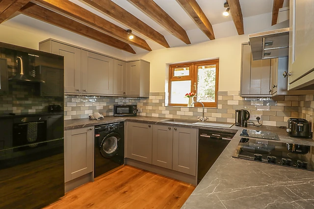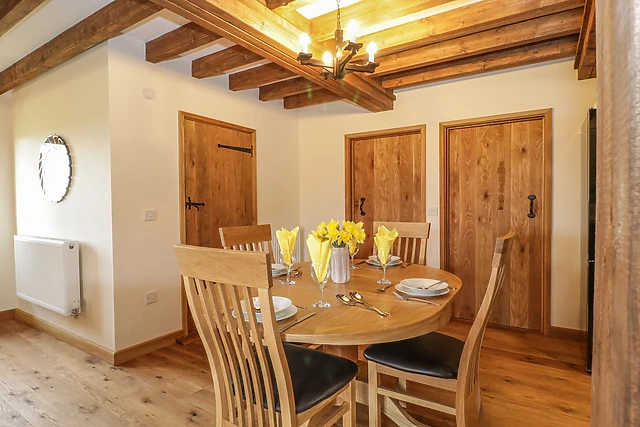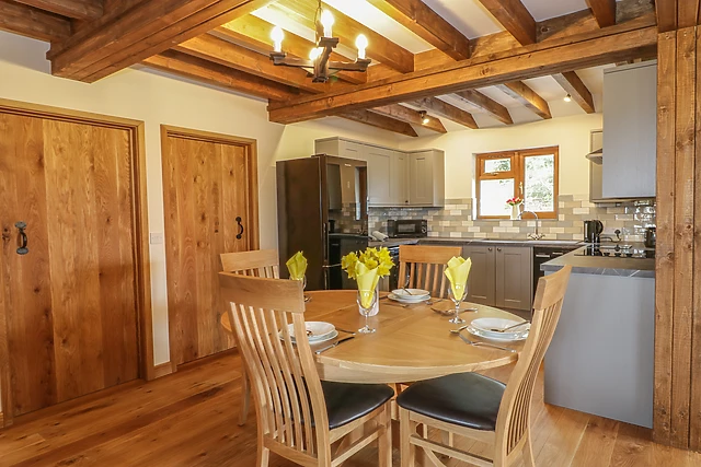 Be welcomed into the open-plan living room, where you will be delighted by the traditional oak flooring and exposed beams, with the blend of contemporary furnishings that offer a relaxing stay. The designated chef of the group can whip up a delicious evening meal within the kitchen area whilst the family gather around the dining table to plan the days ahead.