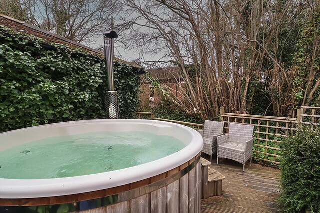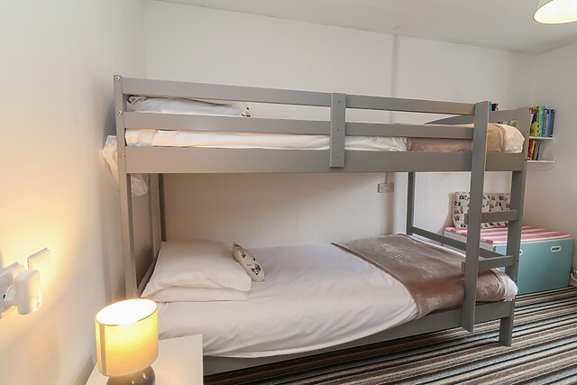 Once that’s been devoured, let the sun carry on beaming down at you, but in the bubbles of the hot tub. When evening approaches, choose from a super-king-size, twin, or bunk bed (accessible from the main bedroom) to get your head down for some rest.