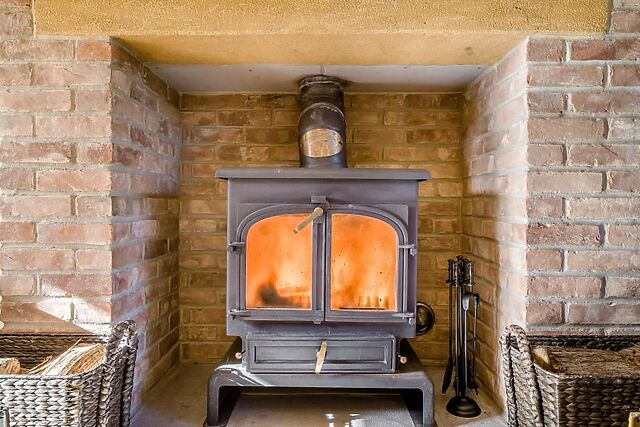 Adjacent, the dining room has dual-aspect windows, more doors onto the garden, and leads into a gorgeous reception room which can also be accessed directly from the utility room. An efficient ground source heat pump ensures warmth at any time of year, but for added ambience after dark, fire up the wood burner, switch on the Smart TV and enjoy some home-from-home entertainment.