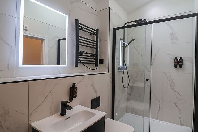 the dining space is ideal for hearty breakfasts, and the sitting area a prime spot for a movie night. The property sports two delightfully appointed bedrooms, a king-size that can be set up as a twin on request, and a super-king-size, both with a TV and access to either a family bathroom or en-suite.