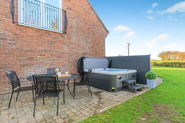 Head on into the open-plan lounge/kitchen/diner, with its vaulted ceiling and bright ambience, to unwind after your busy day. Throw open the French doors to the Juliet balcony in here during the summer months to bring in the sunshine and country air or take a seat on the sofa and absorb the views through the window.
