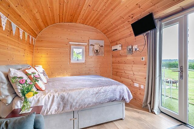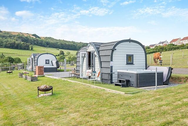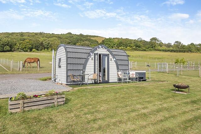 The pod also features a private seating area with garden furniture and a fire pit, perfect for cosy evenings outdoors. Dogs and even horses are welcome, making it an ideal spot for animal lovers.