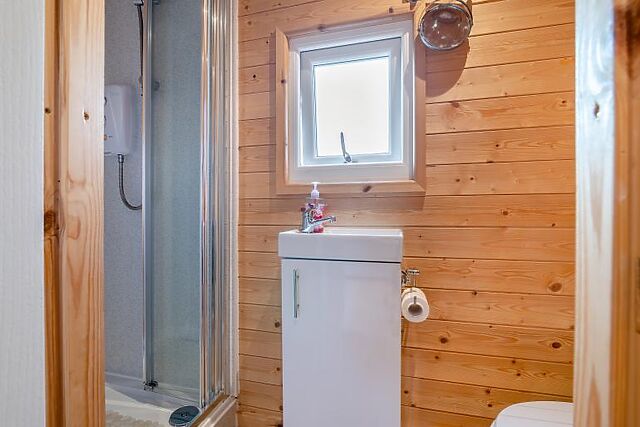 Inside, you'll find an open-plan layout that includes a lounge, kitchen, dining area, and bedroom. The compact kitchen is well-equipped for preparing light meals, and the comfortable double bed ensures a restful night's sleep. The en-suite shower room adds a touch of convenience to your stay.