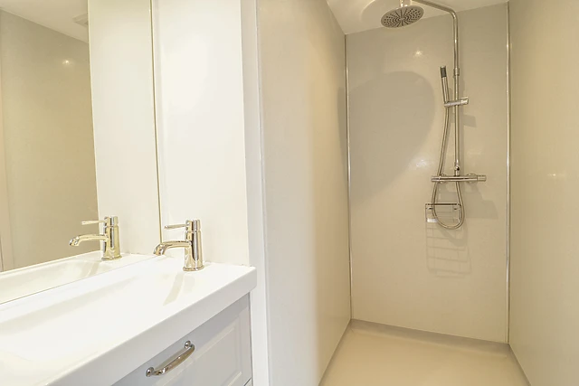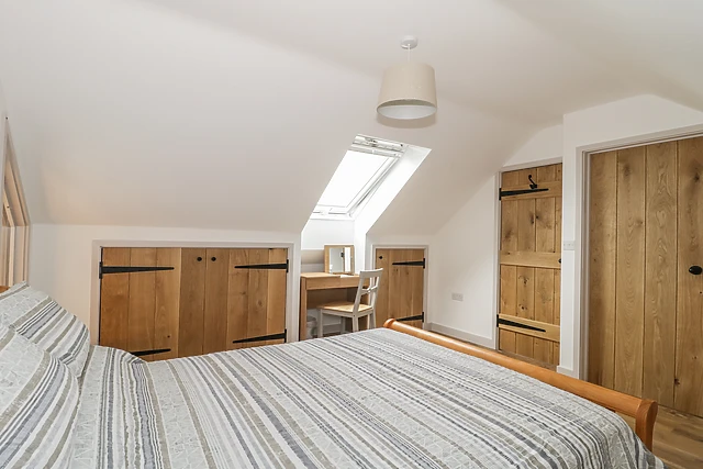 The property boasts an open-plan living area including fully fitted kitchen, with light flooding in from bi-folding doors that bring the outdoors in. There are three bedrooms; one upstairs king-size room with an en-suite, the other downstairs king-size and children's bunk bedroom share a fully fitted wet room.