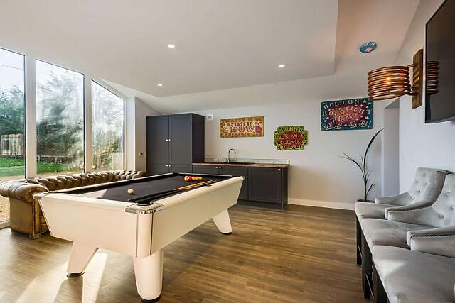 Guests can enjoy a variety of entertainment options including a games room with a pool table, Smart TVs, and outdoor table tennis.