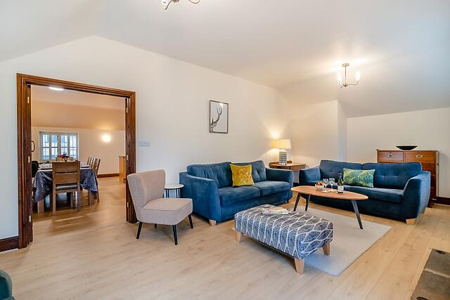 Step inside the hallway and make your way into the striking kitchen/diner that is sure to be at the heart of your holiday. With all the essentials for effortless self-catering and complemented by a handy utility room, it has a central island, and a roomy dining suite arranged before a feature stone wall.