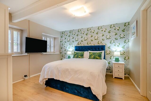 The fourth bedroom is on the first floor and is built into the eaves of the property; with low, sloping ceilings, twin beds and a Smart TV, it’s adjacent to a snug with a Smart TV and X-box. There is also a single sofa bed and a single z-bed in the snug, which are available on request when you book your holiday.