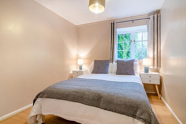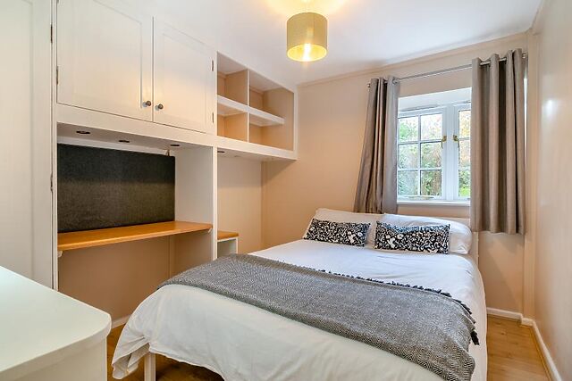 Double doors lead through to the lounge, which overlooks the private garden and French doors open onto the patio. A Smart TV provides home-from-home entertainment.