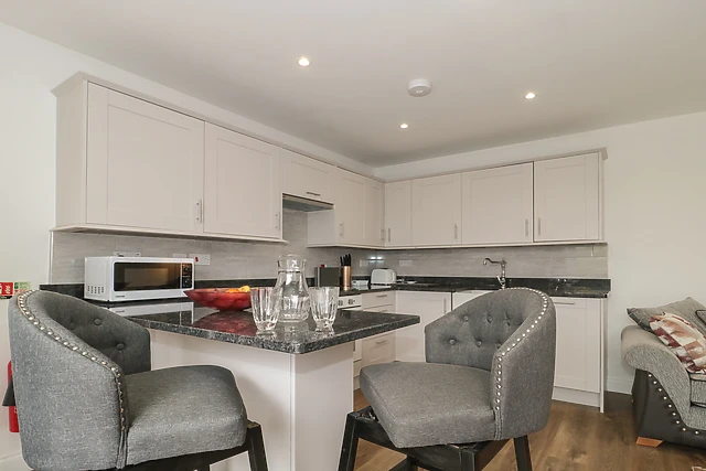 Accommodating two guests, this one-bedroom annex offers a cosy open-plan living space that flows into a well-equipped kitchen.