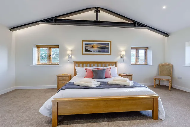 Boasting four beautifully appointed bedrooms, including two king-size with en-suite facilities, a double, and a cosy twin room, this accommodation ensures a restful night's sleep for all.