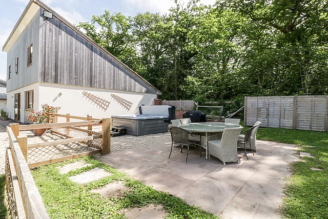 The property boasts an enclosed garden with a seating area, perfect for alfresco dining or simply enjoying the fresh countryside air.