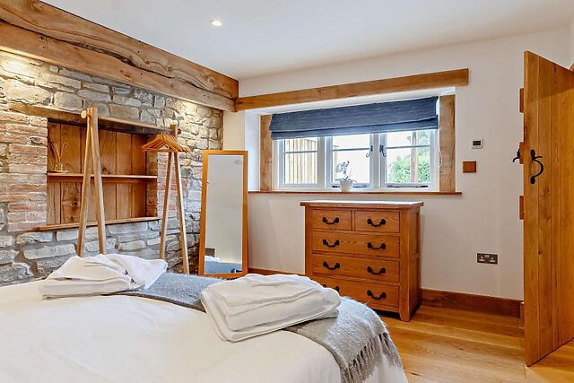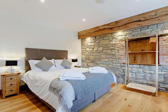 Accommodating two guests in a sumptuous king-size bedroom, the barn exudes charm with its exposed stone walls and oak flooring.