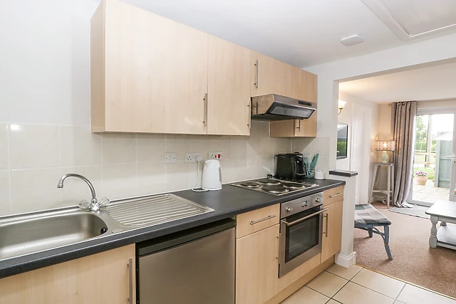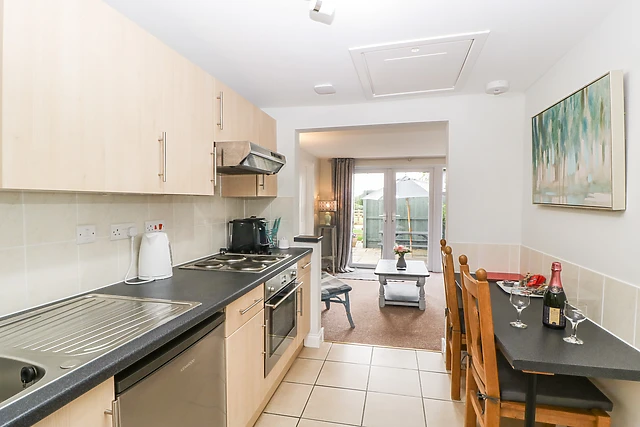 The cottage boasts a modern open-plan living space, complete with a well-equipped kitchen and dining area, ensuring a comfortable self-catering experience.