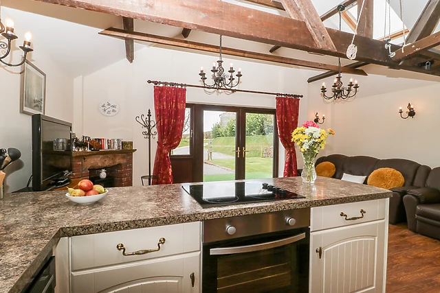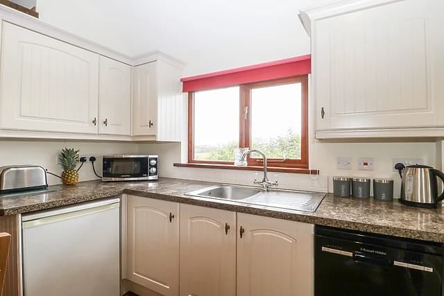 All the rooms are on the ground floor and the open plan living room of this Washford cottage is made attractive by the vaulted beamed ceiling, plentiful windows and laminate flooring throughout. The two bedrooms of this Washford cottage share a stylish Italian marble-lined wet room with underfloor heating.