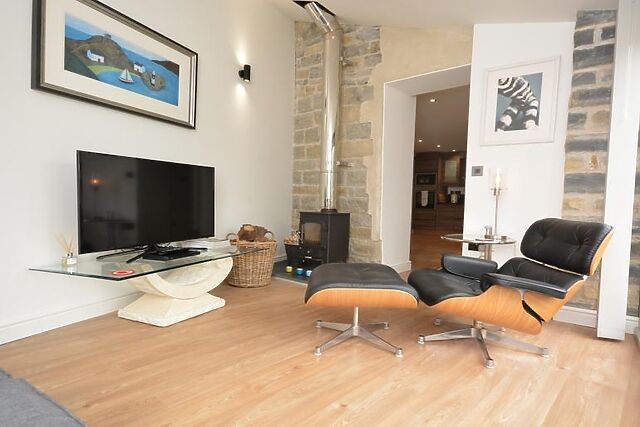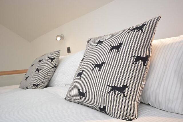 The contemporary furniture here as clearly been carefully chosen, and there is a Smart TV and a wood burner which keeps the room lovely and warm in all weathers. Just across from the lounge, guests will find the spacious kitchen/diner with a glass dining table, a comfortable sofa, and a good range of kitchen equipment including an oven, hob, microwave, fridge/freezer, and washing machine.