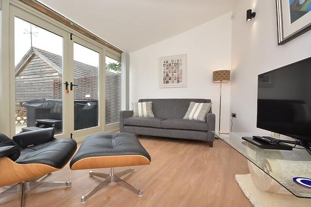 This property is located within the grounds of the owner’s home, but guests are assured their privacy, and can enjoy a wonderfully relaxing retreat. On the ground floor, the heart of the property is the light-filled lounge which has large patio doors leading out to the front of the property.