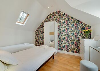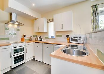 This charming cottage packs in the best of both contemporary and traditional feeling. The traditional wooden furniture and country-style wood-burning stove is the ideal way to warm up in those cosy cooler nights, with the whole family curled up on one of the comfy sofas. Step through the large French doors to watch the sun go down over Devon on the pretty patio area, or retreat upstairs to your welcoming bedroom for an early night and gaze out at the lovely views from the arched bedroom windows instead.