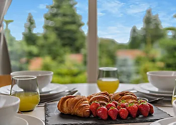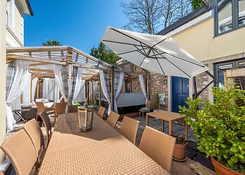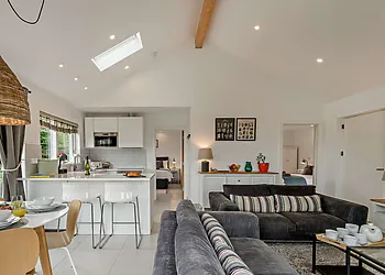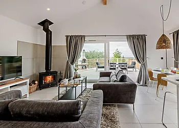 Enjoy a home-cooked meal in the open kitchen-diner or snuggle up on one of the loveseat sofas. Or sample a glass of wine from the vineyard that the property is situated on while taking a soak in the hot tub. Wander through the estate and spot wild pheasants and partridges, or take a scenic drive down the Devon coast to Torquay for a true picture of all the gorgeous scenery Devon has to offer.