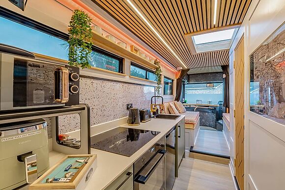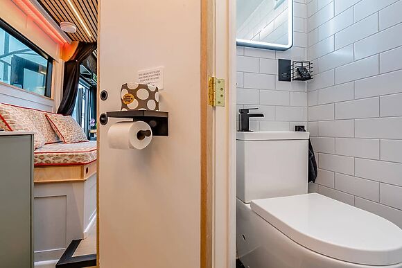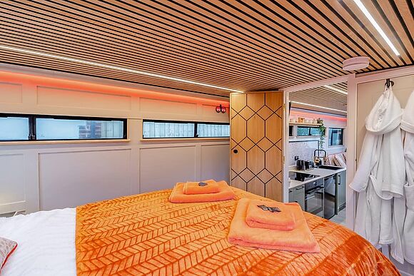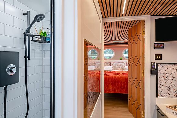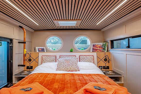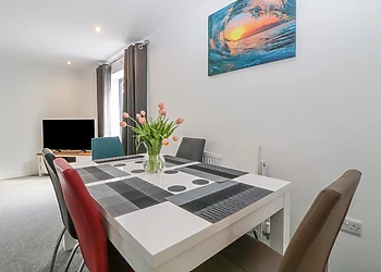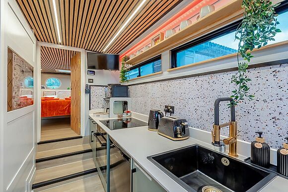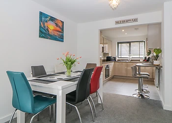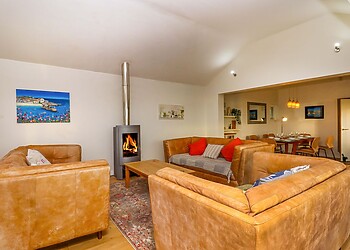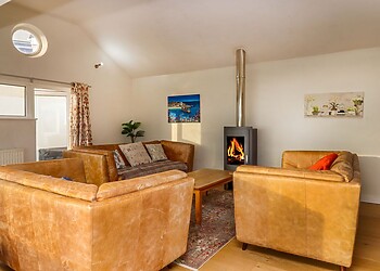 Enter the friendly lounge and settle down in front of the wood-burning fire for a warming cup of tea. Put your legs up on the comfy leather sofas, flick on the large TV, and chat to whoever’s putting together up a hearty meal in the sleek modern kitchen for your first night through the breakfast bar hatch.