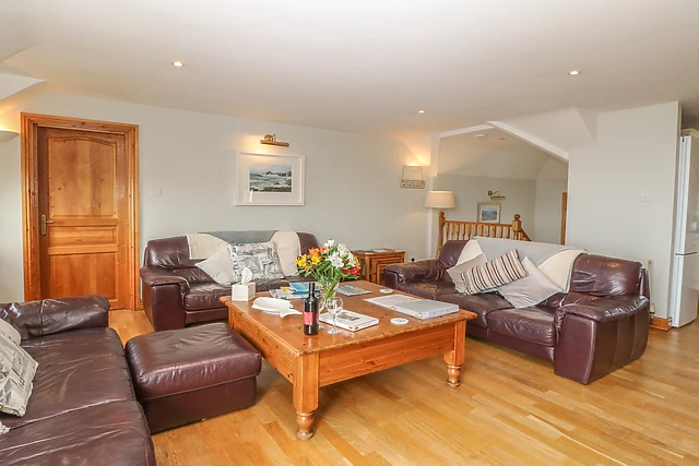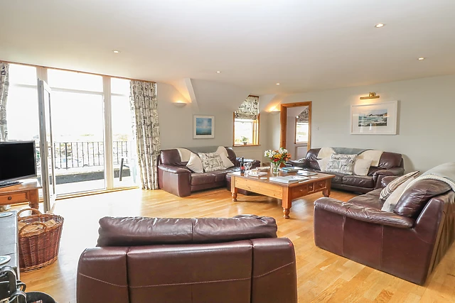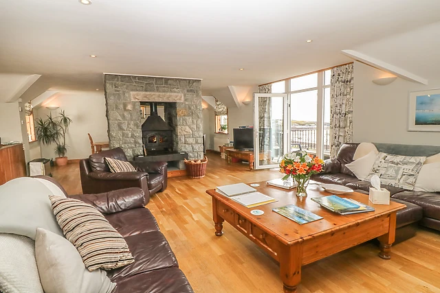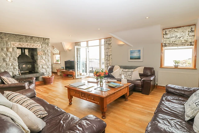 The accommodation takes advantage of the magnificent sea views, with all living accommodation on the first floor and all bedrooms 'sea facing'. The living room features a central log burning stove, polished oak wooden floors and French doors to large balcony overlooking the bay, while after a long day at the beach, what better way to relax than in the six-person sauna and spa pool?