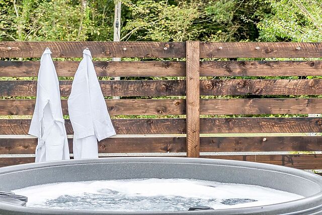 Outside is a sheltered west-facing dining and barbecue area for 10, perfect for sundowners. The extensive, safely enclosed, large rear garden with furniture, an indulgent hot tub, and views over the farm towards Eryri National Park is directly accessible from the kitchen.