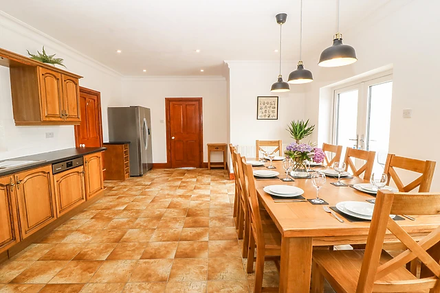 The cottage comfortably accommodates up to nine guests across its four well-appointed bedrooms, making it an ideal choice for larger families or groups.