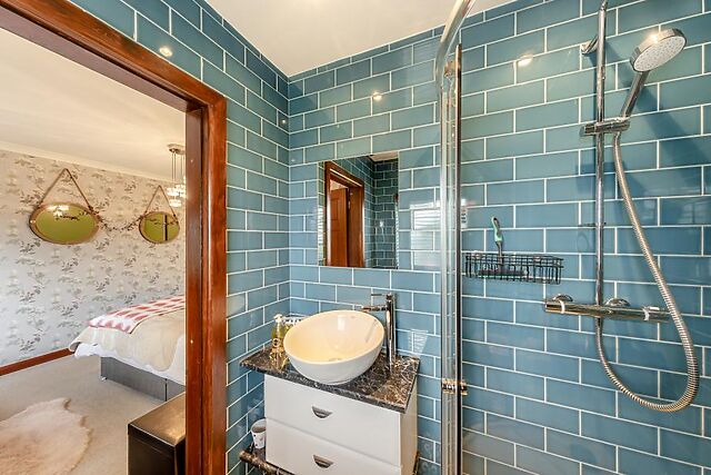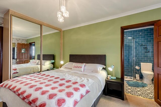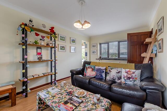 The single-storey holiday home is attached to the owner’s property, and is full of personality and charm. The comfortable lounge is the perfect place to unwind after a day of adventure – snuggle up to watch TV in the glow of the wood burner-effect electric fire.