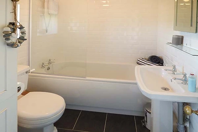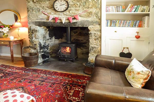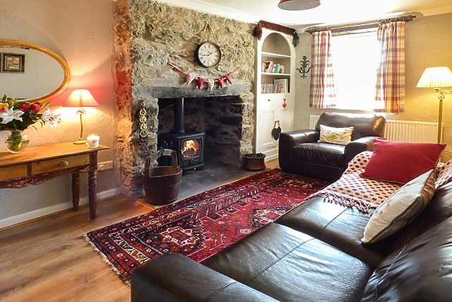 The front door of this lovely cottage opens into a hallway leading to a dining area, ideal to socialise over a scrumptious home-cooked meal and benefitting from a two seater sofa in front of a TV with a DVD player, ideal for kids to chill in front of. For the adults there is a welcoming sitting room with characterful woodburner, set in a stone inglenook fireplace, with comfy sofas to relax into after a day exploring the beautiful island.