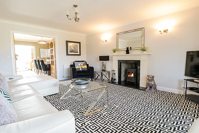 The open fire and coastal decor create a serene ambiance, while modern amenities like Sky TV and broadband ensure entertainment and connectivity during your stay.