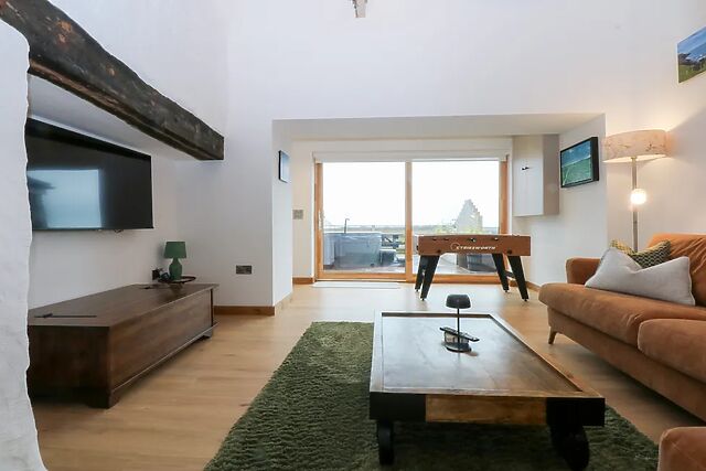 The inviting sitting room is perfect for evenings together, featuring a plush sofa, Smart TV and a fun table football table that promises friendly competition after a day of exploring. The stylish kitchen/diner provides everything you need to prepare and share meals, with sleek appliances such as an electric oven and hob, a coffee maker for your morning brew, and a dining table for four where you can gather to enjoy good food and conversation.