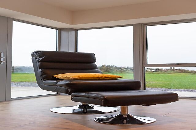 Enjoy the stunning Welsh countryside views from the hot tub in the enclosed garden. The property also features three patio areas, perfect for alfresco dining. The stylish bio ethanol stove and contemporary furnishings add a touch of elegance to your stay.